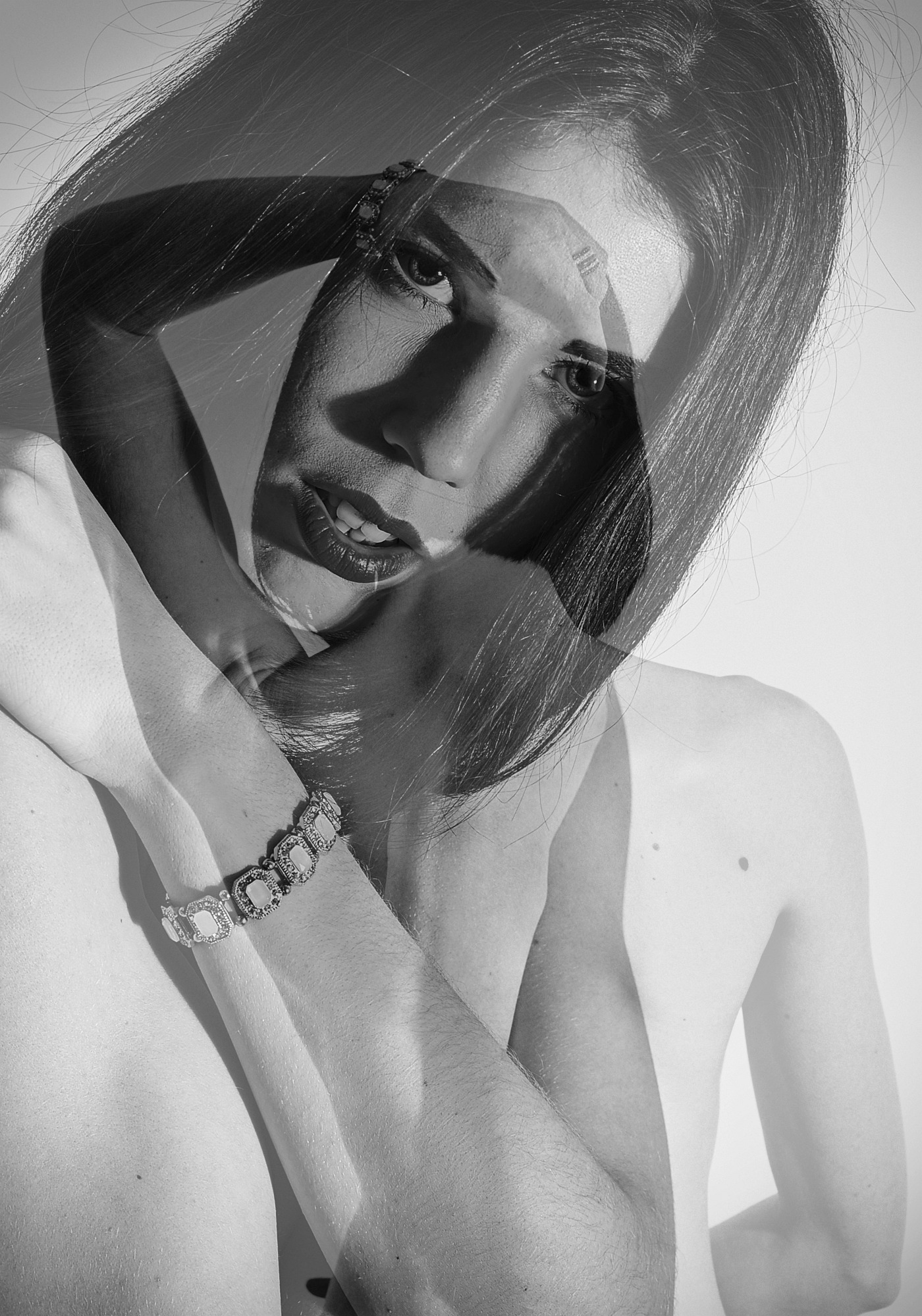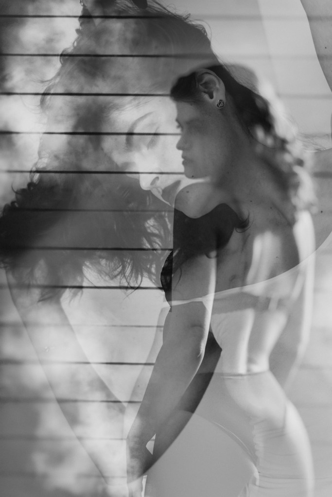 Eine Serie von Doppelbelichtungen, jeweils des gleichen Models. Es gibt nicht nur einen Blick auf den Menschen.